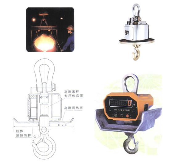 專為冶金、鑄造行業(yè)度身設(shè)計,使用于高溫環(huán)境。他在原有普通秤體的基礎(chǔ) 上作了專門的設(shè)計與改進: 1、采用獨特?zé)釕B(tài)吊鉤秤專用傳感器,以保證在高溫環(huán)境下能獲得較好的準確性。 2、加裝高溫隔熱板,有效阻擋熱源輻射。 3,秤體的腔體內(nèi),添加了隔熱防護層,進一步阻擋熱源的滲透。 注意: 凡工作在高溫環(huán)境下的吊鉤秤,必須保證秤體吊鉤底面與被吊熱源間距大于1.5米, 起吊物體溫度最高不得超過1600℃。 | |||||||||||||||||||||||||||||||||||||||||||||||||